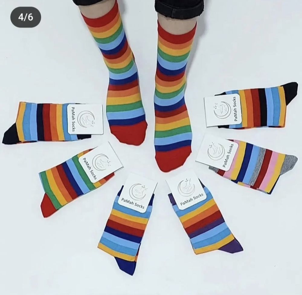 جوراب ساقداراعلا نخ پنبه ریز بافت با کیفیت بالا رنگبندی بی نظیر بدون حساسیت وضد بو به صورت عمده با طرحهای فانتزی وساده۱۲عدددر یک جین